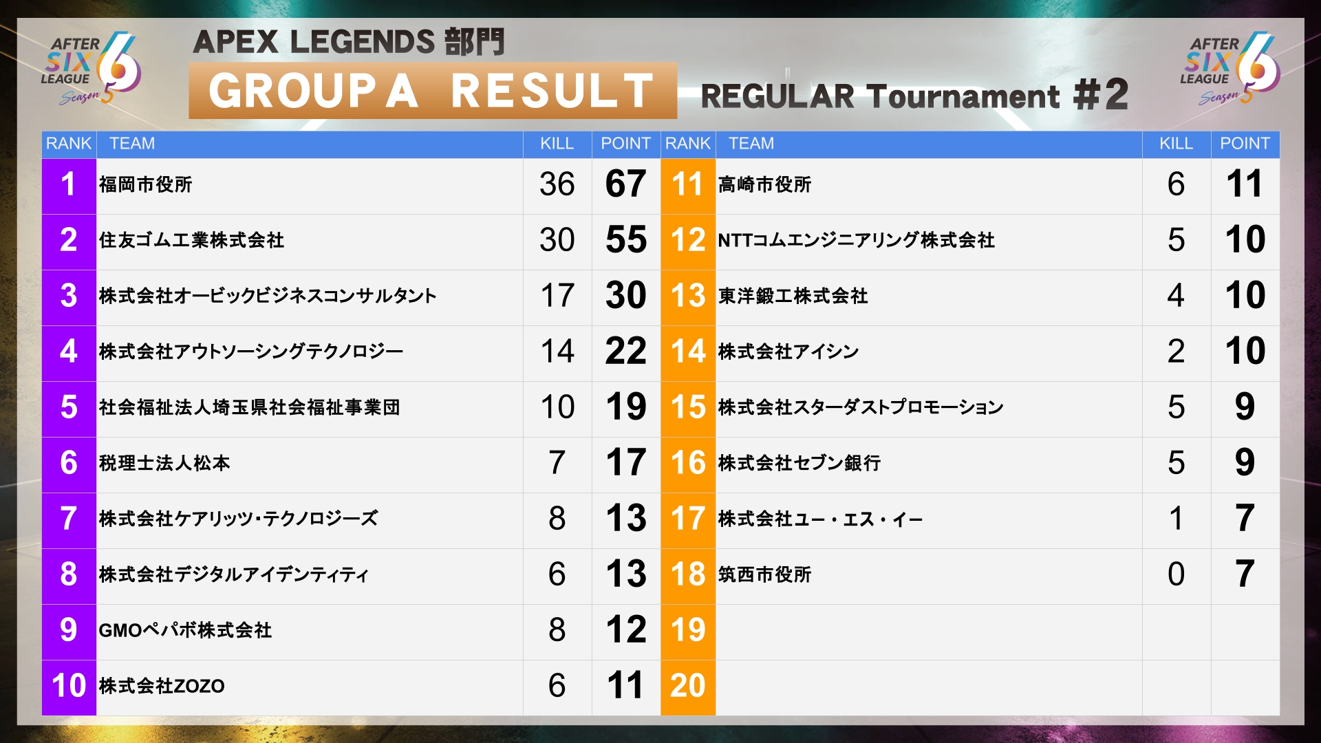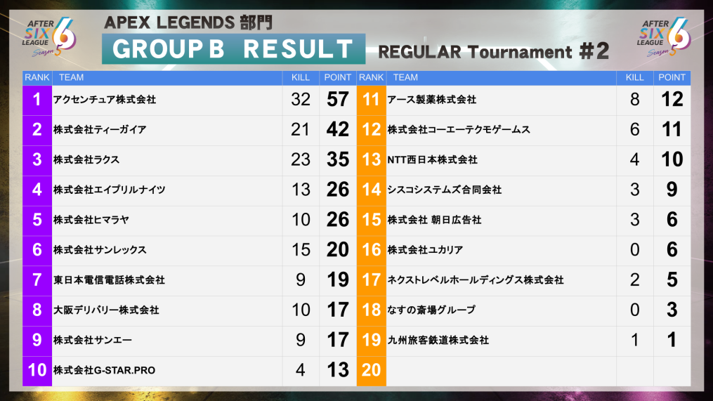 | 18 | 株式会社G-STAR.PRO | 1 | 6 |